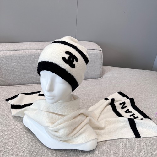 샤넬 코코 로고 니트 비니 & 머플러