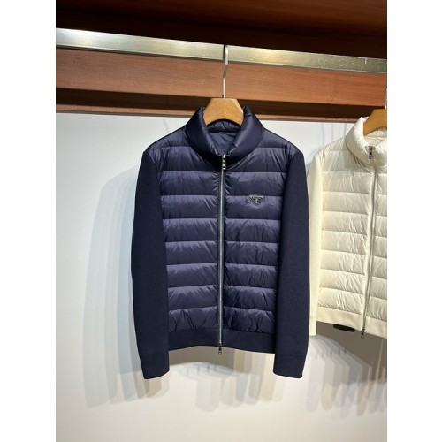 니트 패브릭 스티치 스탠드 업 카라 다운 재킷