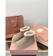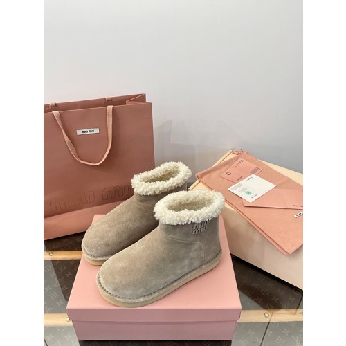 부드러운 스웨이드 위에 포근한 양털을 더한 미우미우 2025 F/W 신상 숏부츠.