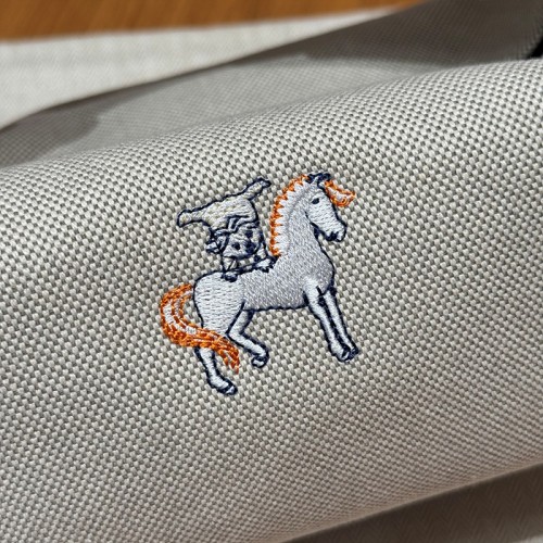 정면에는 에르메스 상징인 말 & 그루밍 일러스트가 자수로 들어가